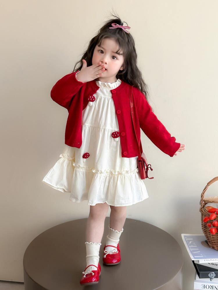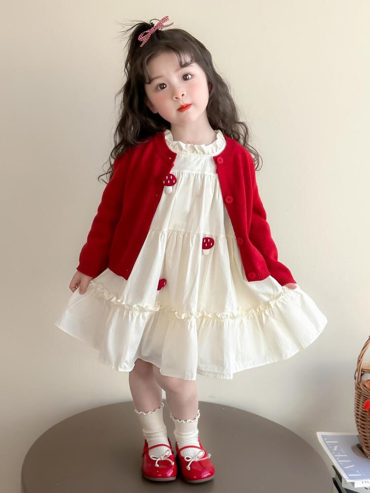ワンピース 子供服 女の子 春秋 ニットカーディガン 長袖 プリンセス スカート チュールスカート コットン 2点セット かわいい おしゃれ 赤ちゃん 幼児 ガールズ イベント パーティー 発表会
