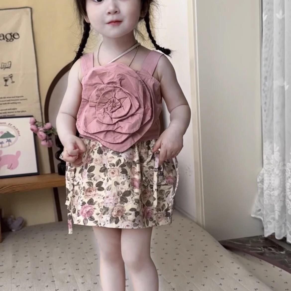 子供服 女の子用 セットアップ 夏物 ワンピース&スカート 上下セット 花柄 ノースリーブ かわいい 薄手 コットン 通園 普段使い