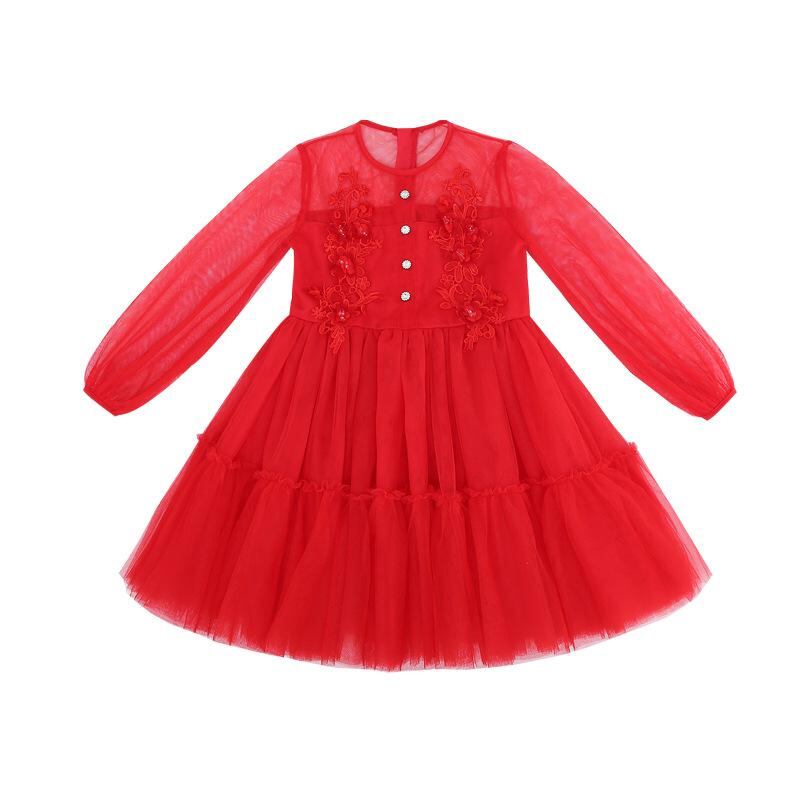 ワンピース 女の子 プリンセスドレス チュールスカート 子供 発表会 演奏会 春夏 ポリエステル レッド ホワイト 110 120 130 140 150 160 | Kneebaファッションショップ
