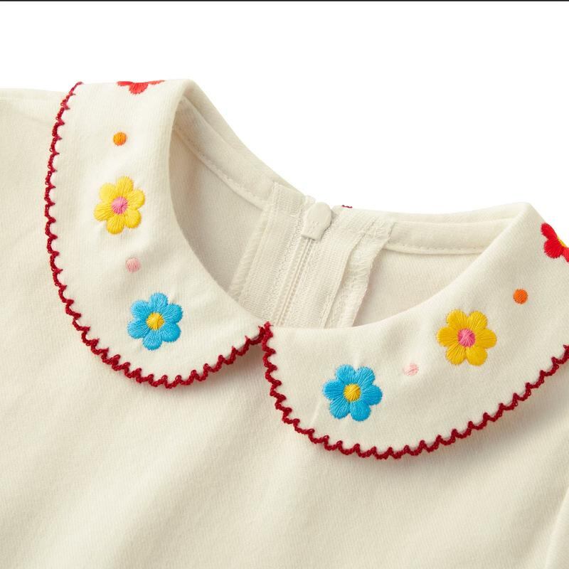 ワンピース キッズ 女の子 小花 刺繍 襟付き 長袖 切り替え 春秋 冬 子供 普段着