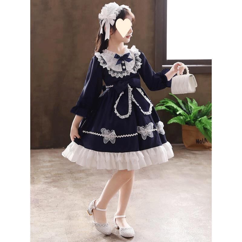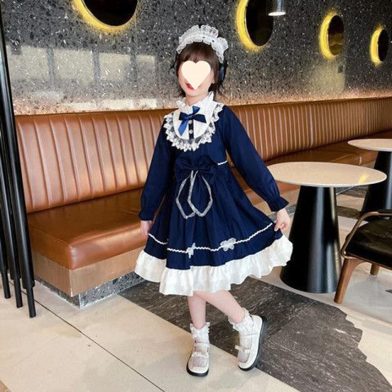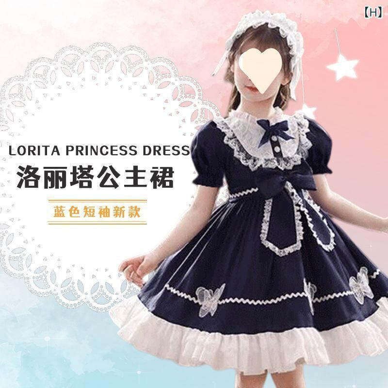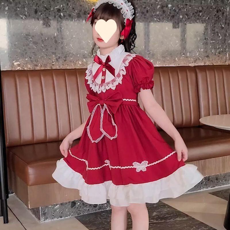 ワンピース 子供 女の子 ロリータ 童話 ストーリー チュール スカート 赤色 ブルー 8歳以上 コットン 春秋 長袖 半袖 かわいい
