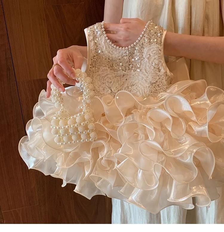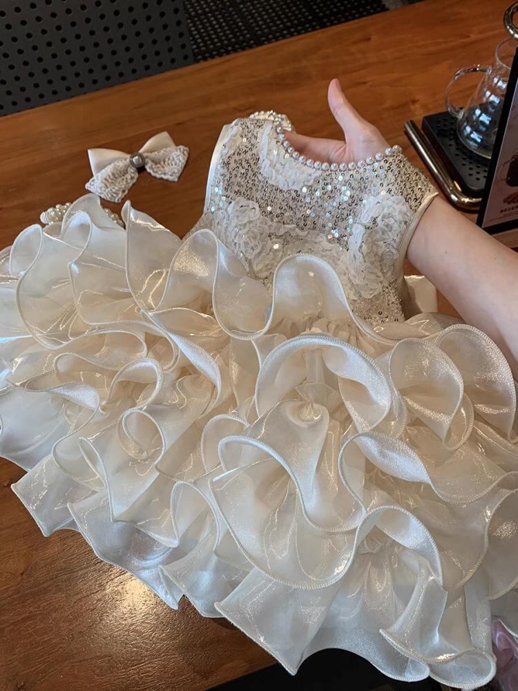 ワンピース 女の子 子供 プリンセス ドレス ケーキスカート スパンコール 礼服 ポリエステル シャンパンゴールド 90 100 110 120 130 140 春夏