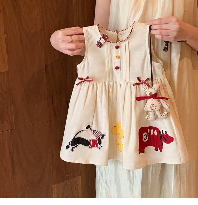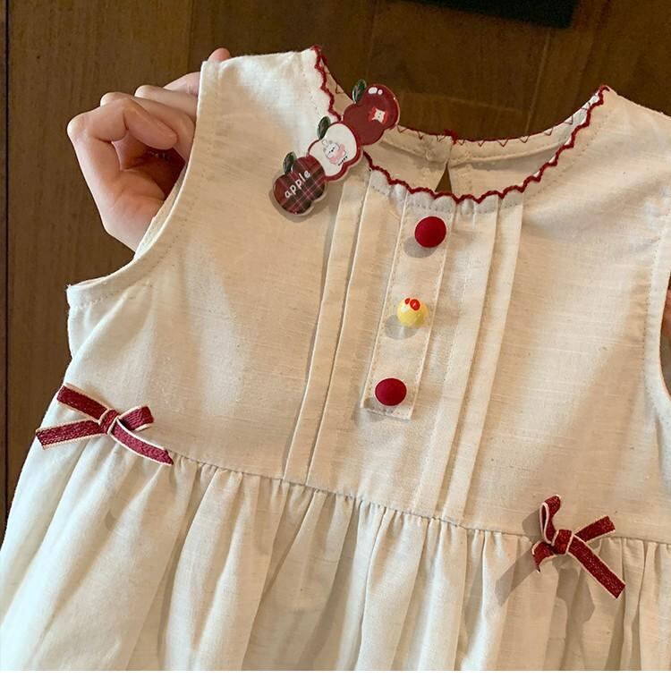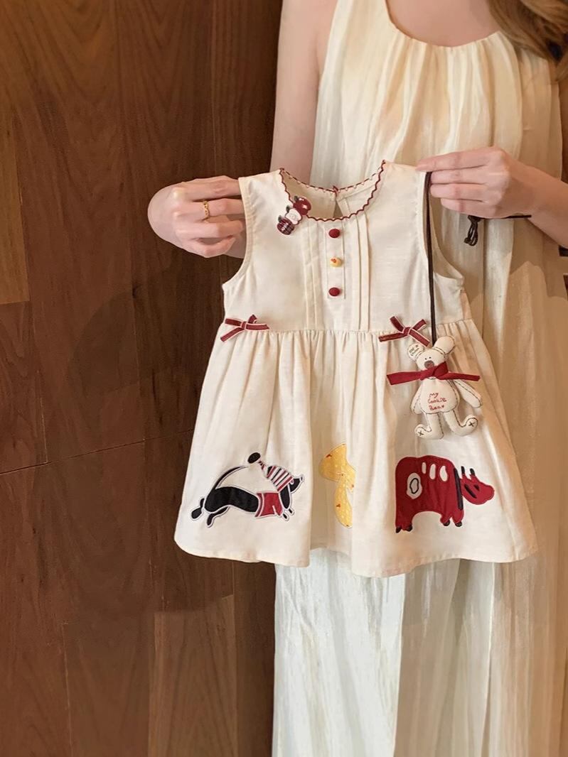 ワンピース キッズ 女の子 かわいい キャミソールワンピース コットン 公園着 普段着 お出かけ着 カートーン柄 蝶結び 杏色 春夏