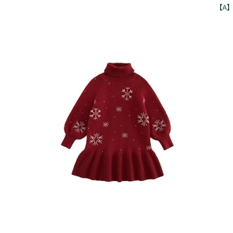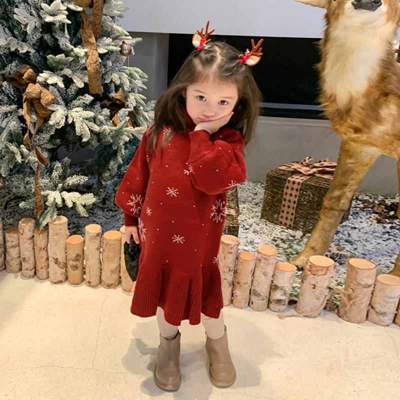 ワンピース 女の子 クリスマス 赤 暖かい ニット 長袖 Aライン 公主 中小童 ポリエステル 秋冬 かわいい おしゃれ