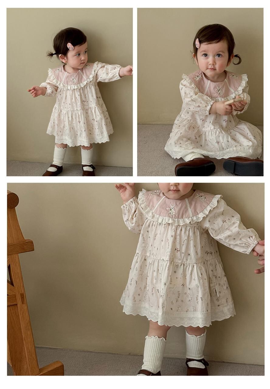 ワンピース 女の子 子供服 長袖 春秋 A類 コットン カートゥーン プリンセススタイル 膝丈 ミディアム丈 普段着 おしゃれ着