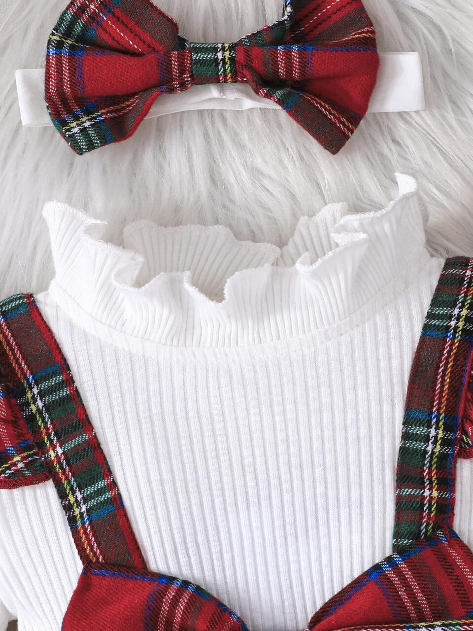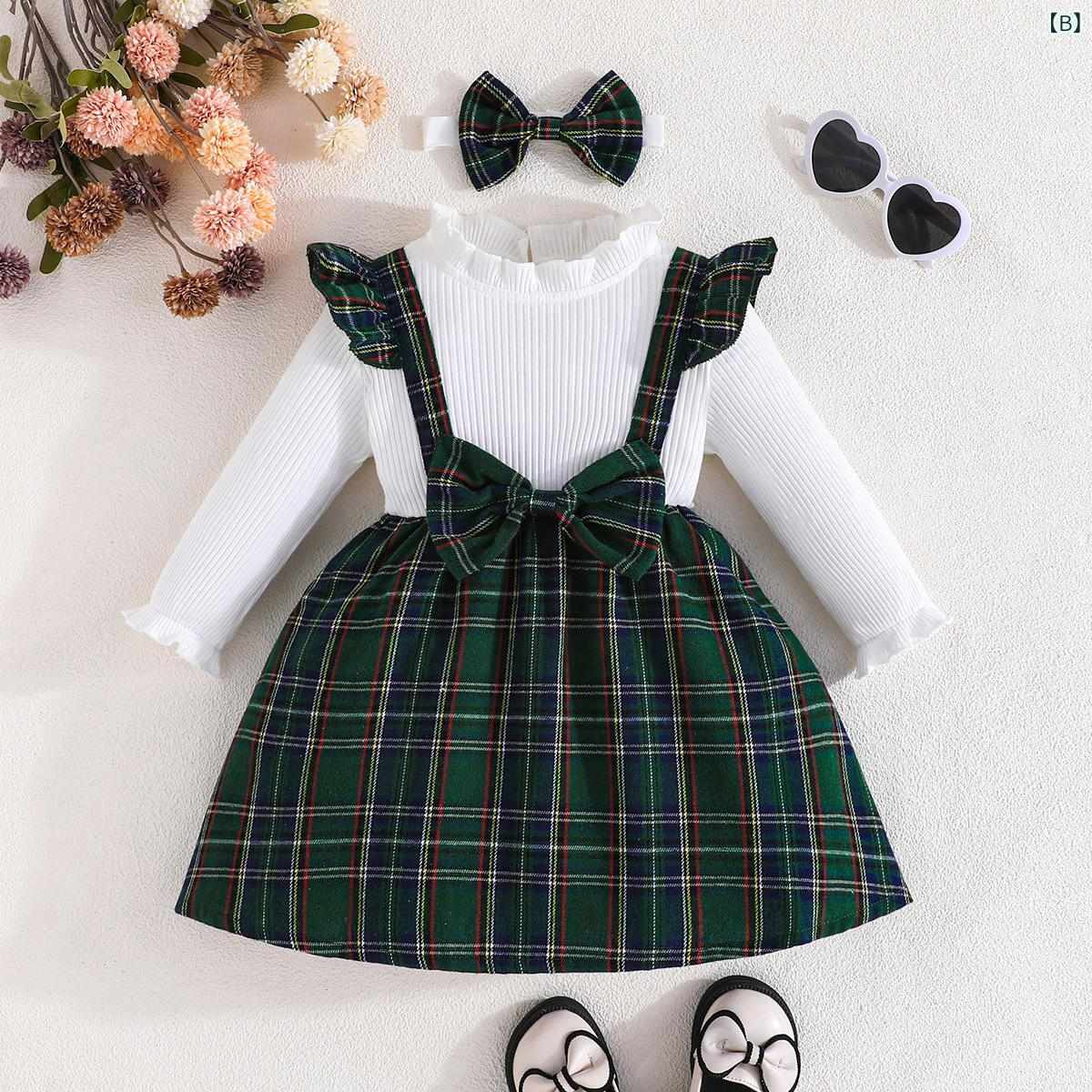 ワンピース 女の子 長袖 チェック柄 蝶結び クリスマス Aライン 運動着 ベビー 幼児 秋冬 綿 93% かわいい 普段使い