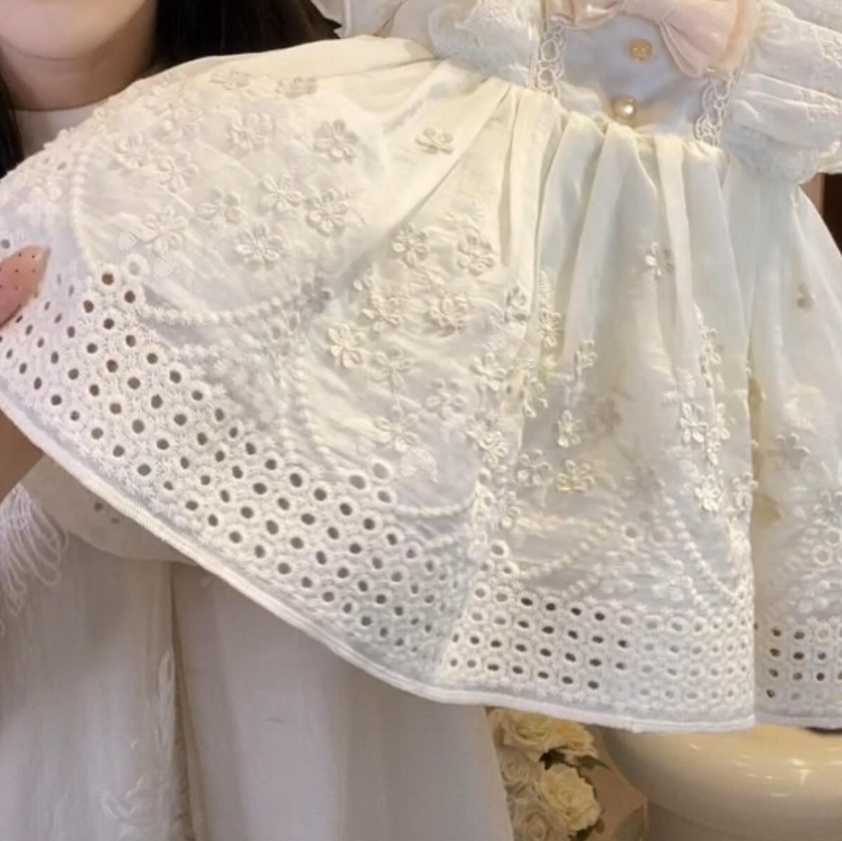 ワンピース キッズ 女の子 ロリータ プリンセス フリル レース 花柄 コットン かわいい おしゃれ 誕生日 結婚式 発表会 杏色