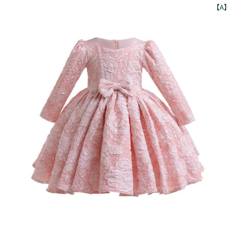 ワンピース 子供 女の子 長袖 フォーマル ドレス 発表会 結婚式 プリンセス チュール Aライン 春秋 ポリエステル レッド 80 90 100 110 120 130