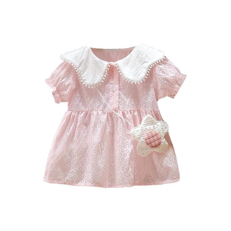 ワンピース ベビー服 女の子 半袖 花柄 プリンセス かわいい 幼児 チュールスカート コットン 夏 ピンク系 白 80 90 100 110cm