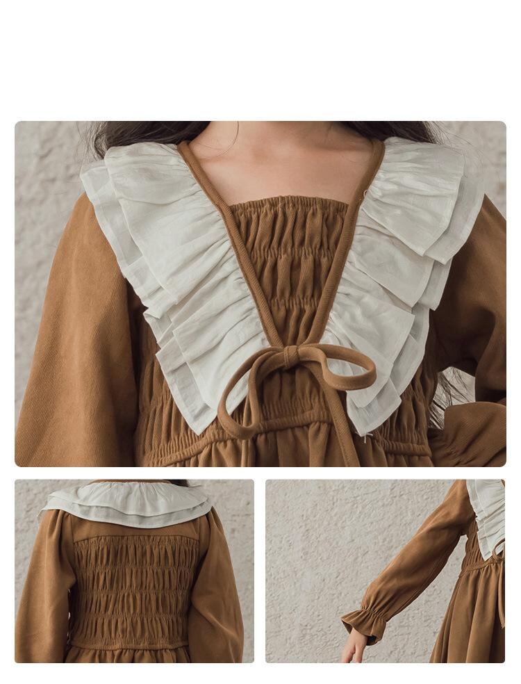 ワンピース 女の子 春秋 中大童 プリンセス 森ガール チュール 長袖 Aライン 無地 膝丈 ミディアム丈 発表会 結婚式 パーティー かわいい