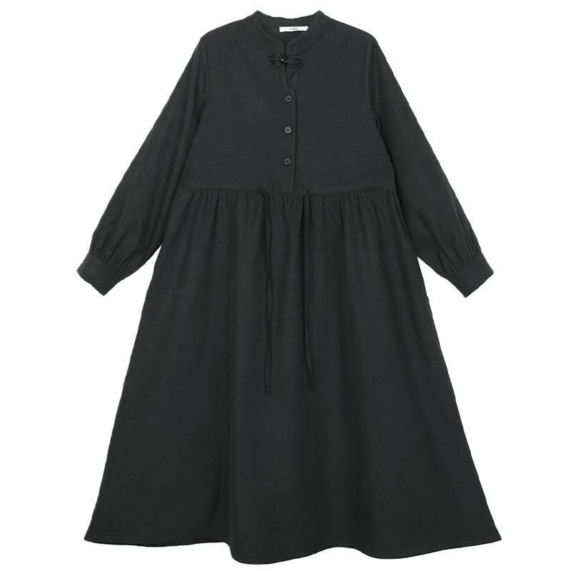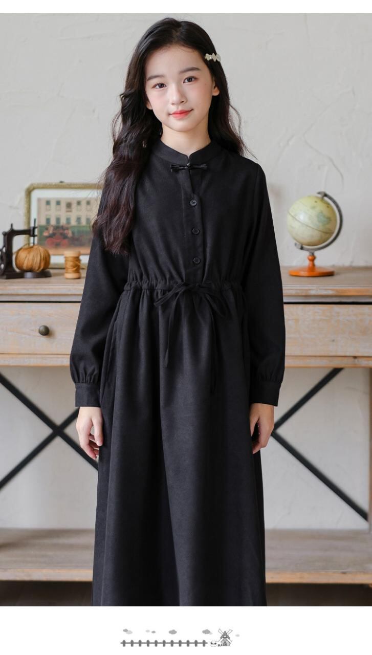 ワンピース 女の子 秋冬 長袖 大童 中華風 絞り ゆったり コールテン チュニック 親子コーデ 花柄 赤 黒 120 130 140 150 160 165