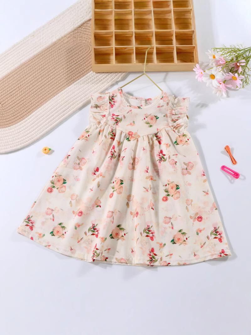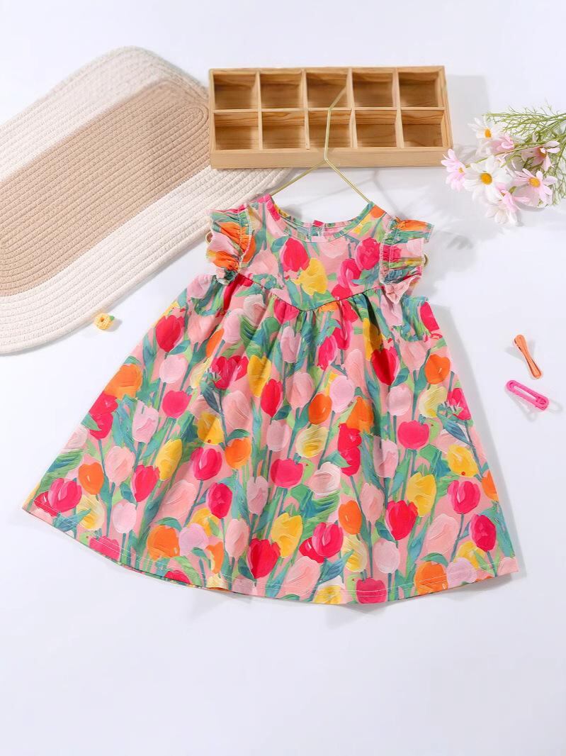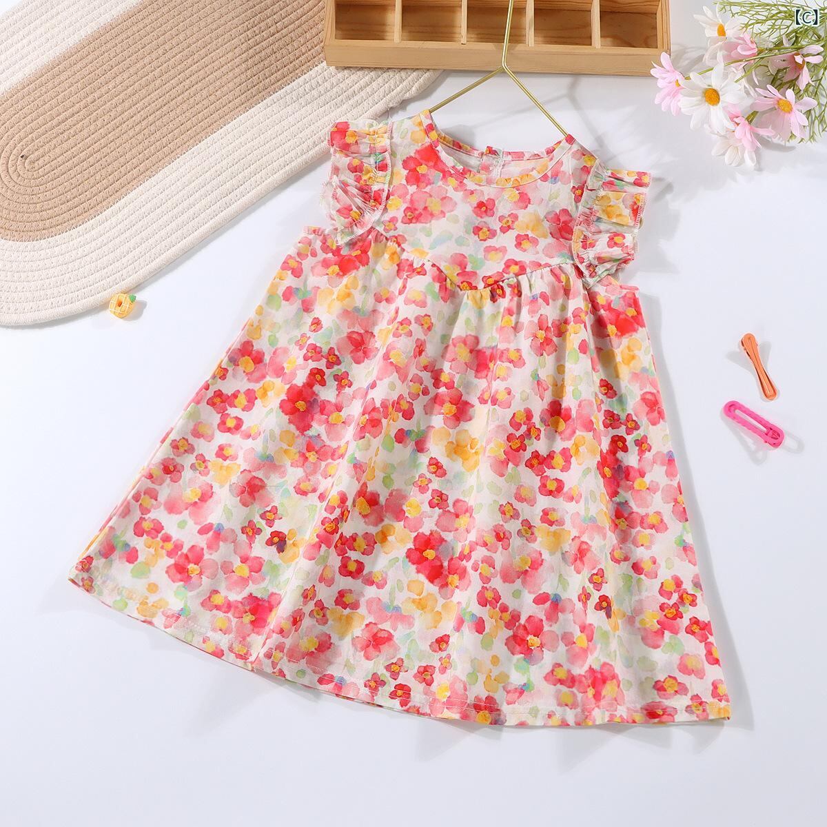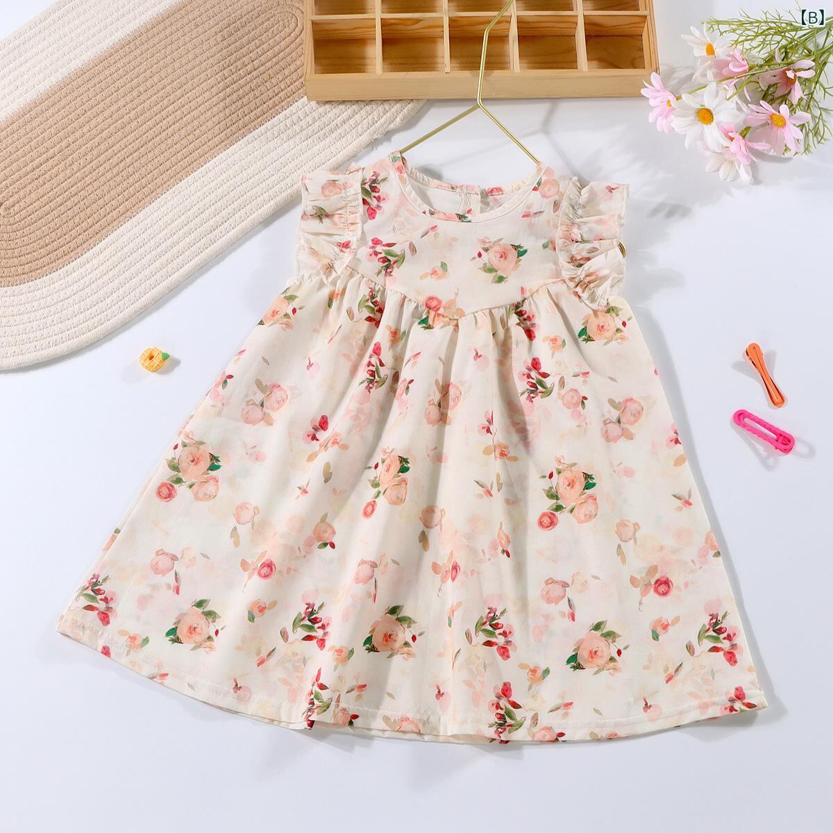 ワンピース 女の子 子供服 チュールスカート チュールワンピース ノースリーブ 花柄 膝丈 ひざ丈 Aライン フレアスカート 綿 コットン 裏地付き かわいい おしゃれ お出かけ着 普段着 夏