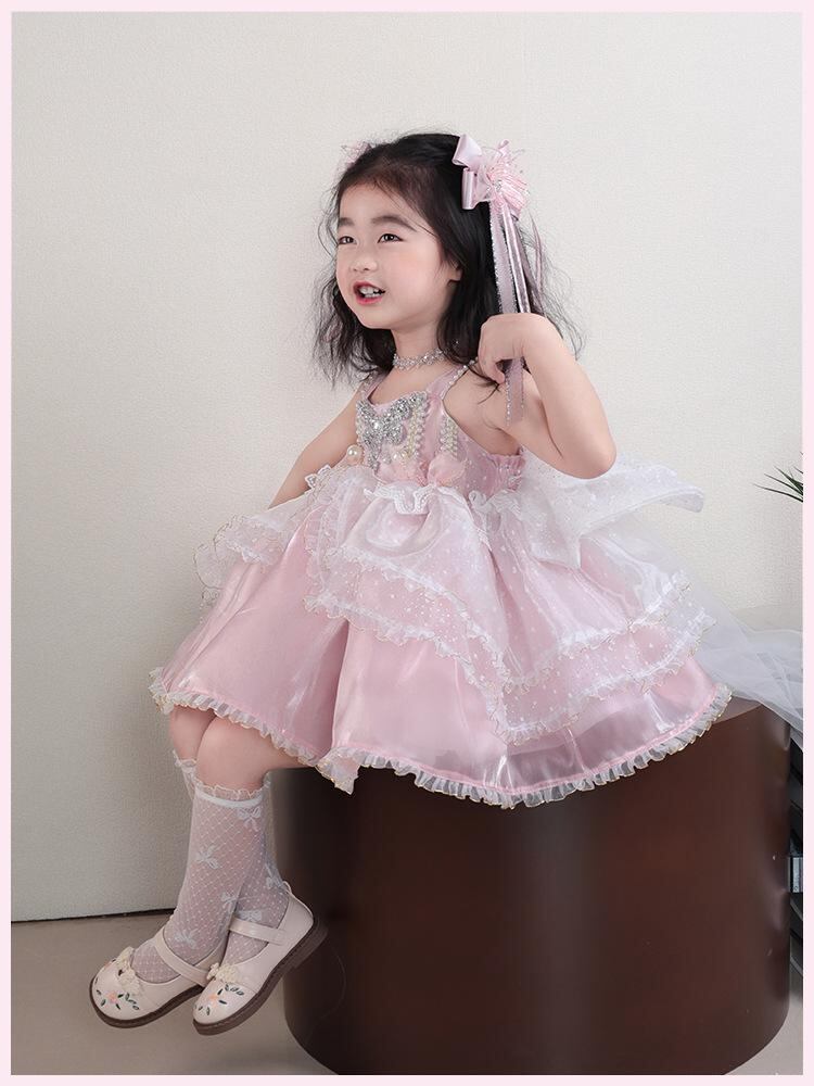 ワンピース キッズ 女の子 ロリータ プリンセス 子供 ピンク 吊りスカート チュールワンピース フォーマル 発表会 結婚式 高品質 かわいい 夏