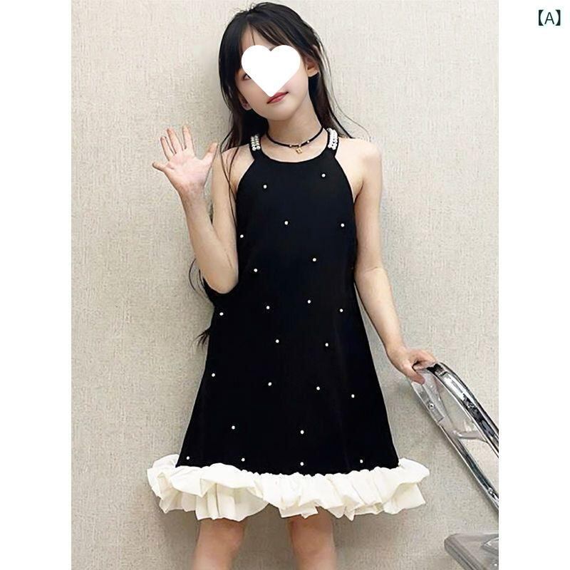 ワンピース キッズ 女の子 キャミソールワンピース Aライン チュールスカート 接触冷感 かわいい 子供服 発表会 結婚式 夏 ブラック系