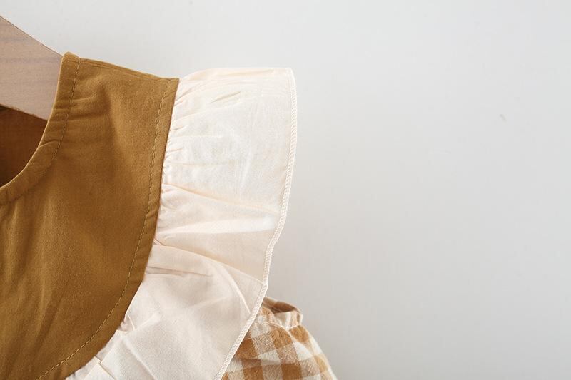 ワンピース キッズ 女の子 韓国風 格子柄 花柄 刺繍 コットン プリンセス スカート 幼児 ベビー 春夏 かわいい おしゃれ 焦糖色