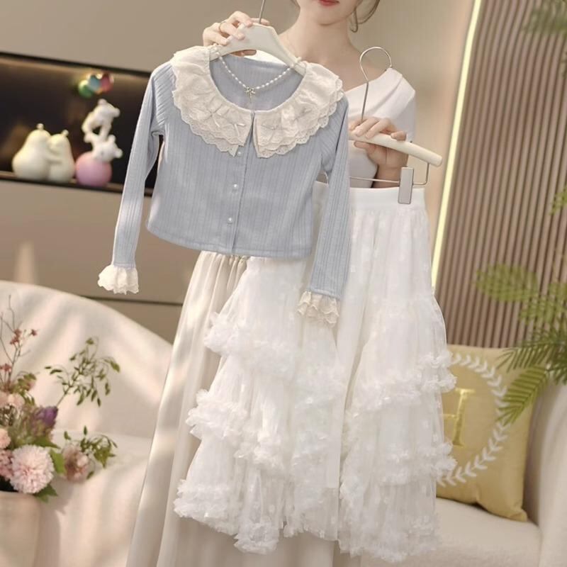 ワンピース キッズ 春秋 ニット カーディガン セットアップ 女の子 子供服 チュールスカート Aライン フレアスカート 無地 かわいい おしゃれ ガールズ 発表会 普段使い