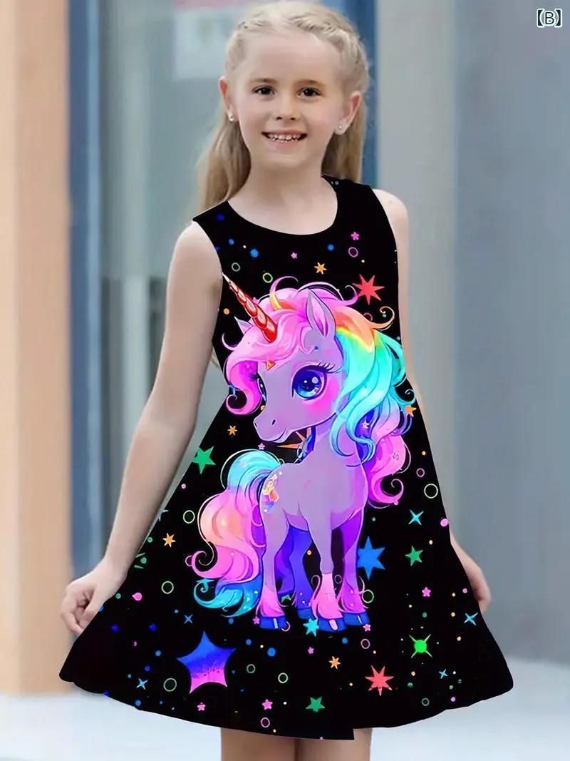 ワンピース 子供服 女の子 プリンセス かわいい A字スカート ポリエステル 3Dプリント 接触冷感 伸縮性