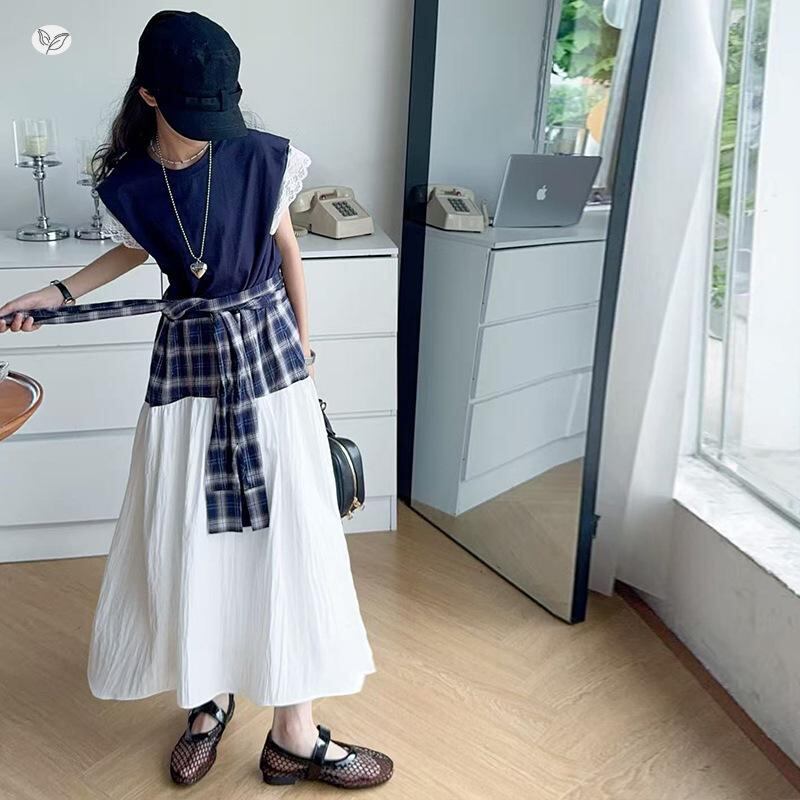ワンピース 女の子 夏 格子柄 レース ノースリーブ Aライン 120 130 140 150 160 170 かわいい 発表会 結婚式 パーティー お出かけ B類