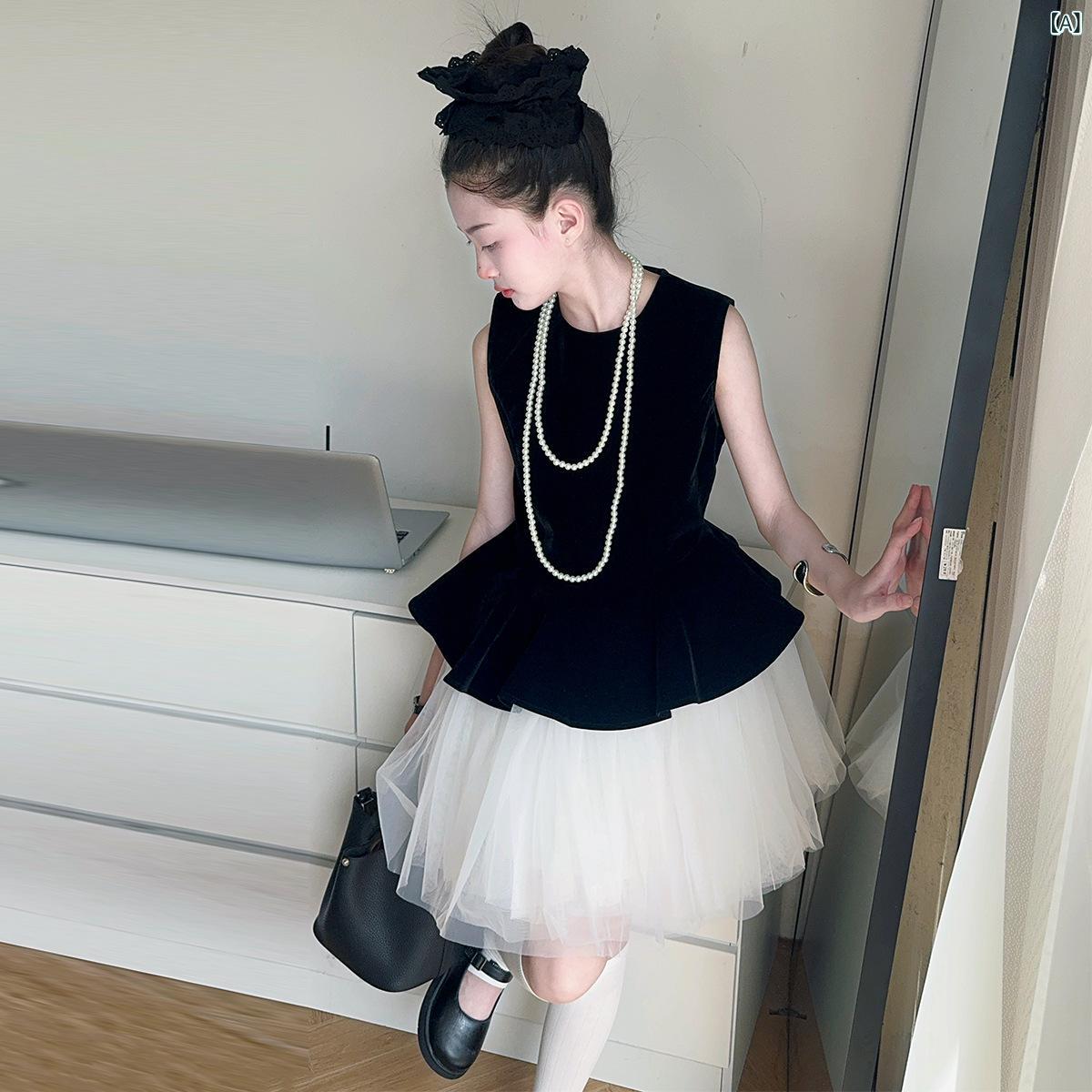 ワンピース キッズ 女の子 ノースリーブ Aライン プリンセス風 チュールスカート 膝丈 無地 かわいい ポリエステル混紡 夏 白 120cm 130cm 140cm 150cm 160cm 170cm