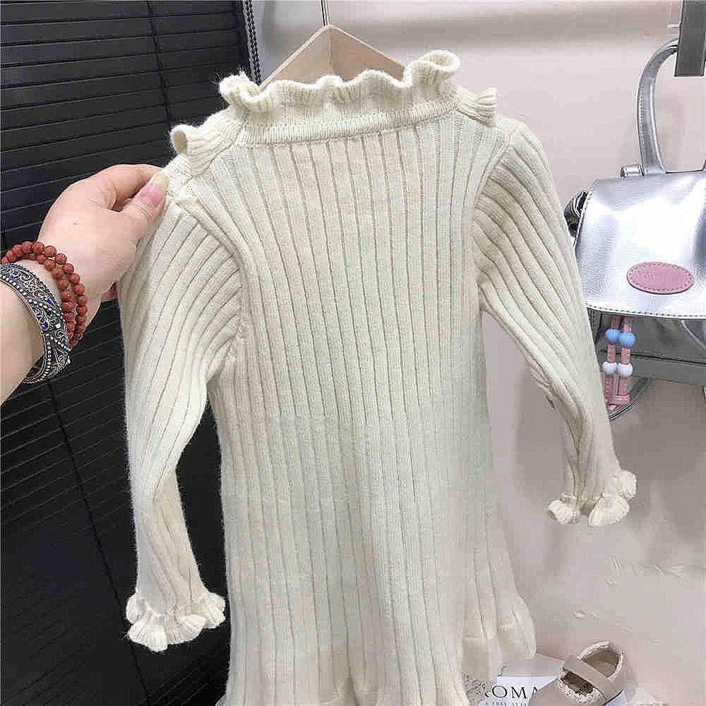 ワンピース キッズ 女の子 ニットワンピース 秋冬 長袖 子供服 プリンセス スカート かわいい おしゃれ カジュアル 普段使い ベージュ系