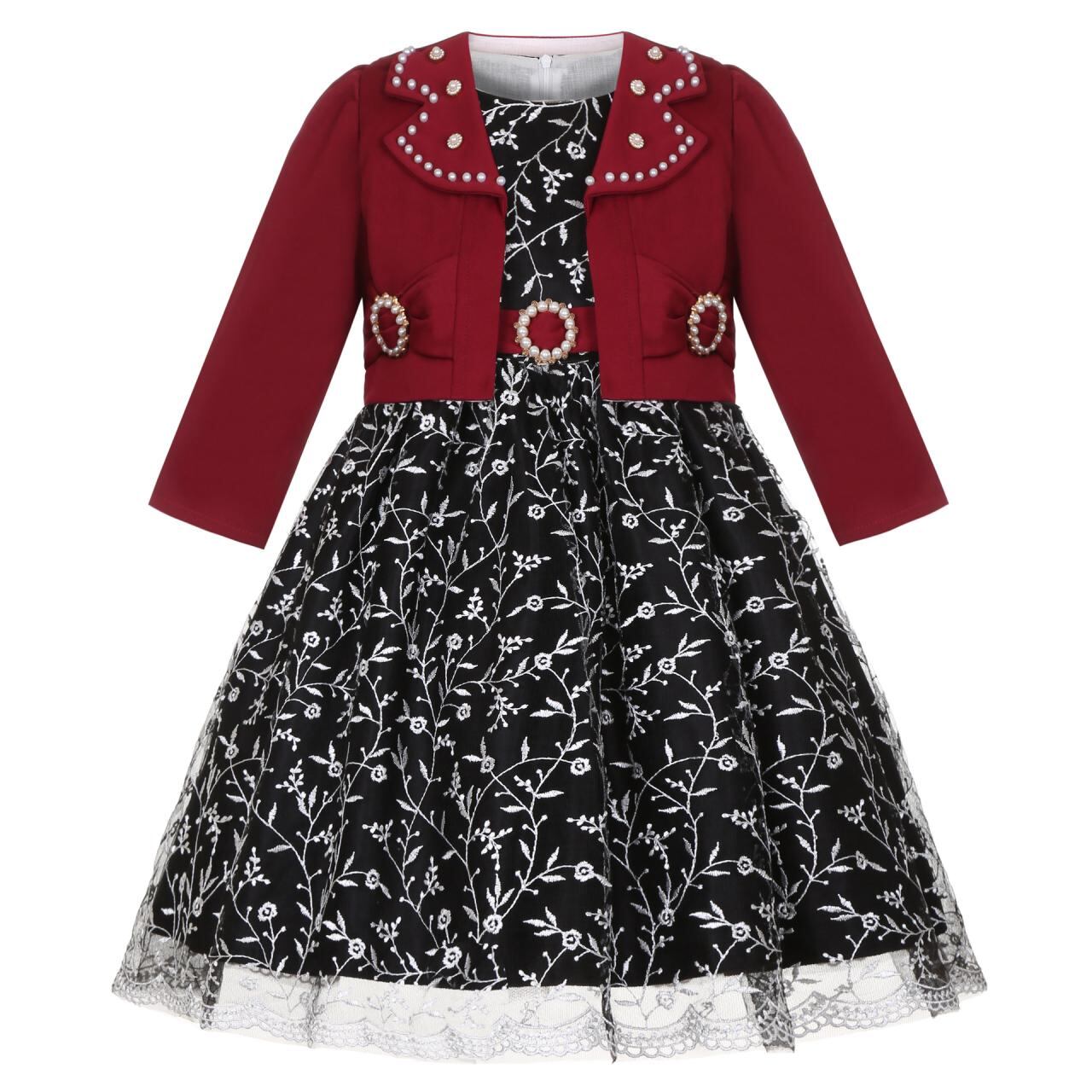 ワンピース 子供服 女の子 ピアノ 発表会 ドレス チュール Aライン フレアスカート 長袖 花柄 春秋 結婚式 パーティー フォーマル イベント 演奏会 ベージュ系 イエロー系