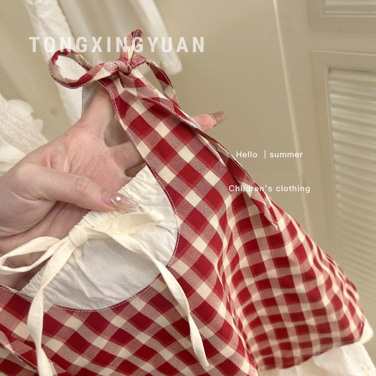 ワンピース キッズ 子供服 女の子 チェック柄 ノースリーブ プリンセススカート 80 90 100 110 120 130 赤色 レッド系 帽子付き かわいい 綿 100% 夏