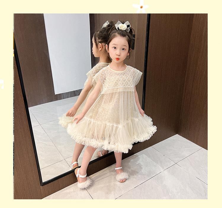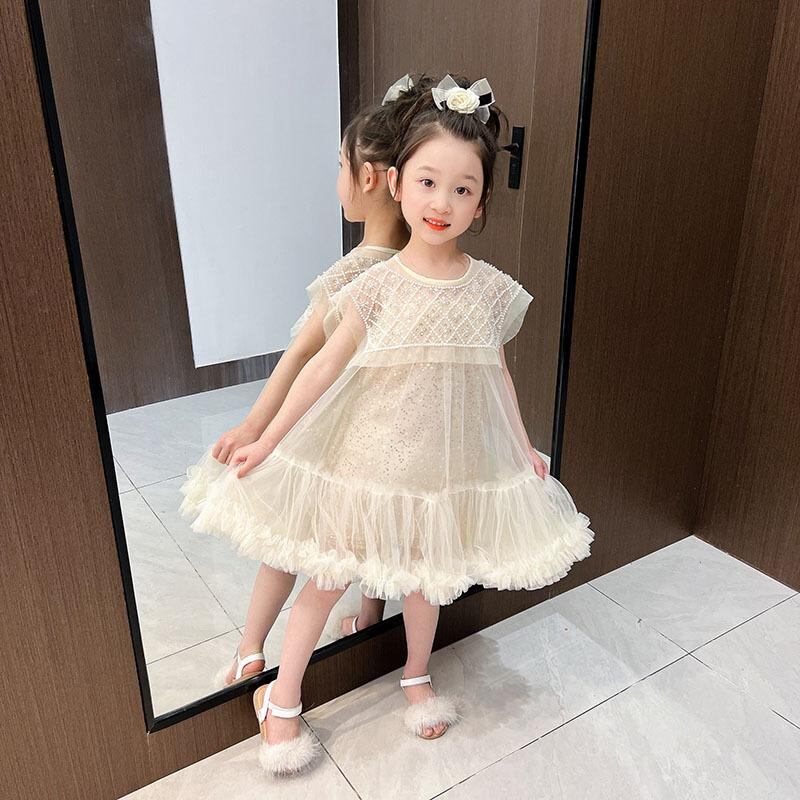 ワンピース 女の子 子供 チュールスカート プリンセスドレス チュチュスカート 発表会 杏色 チュール 重ね着風 ポリエステル かわいい 夏