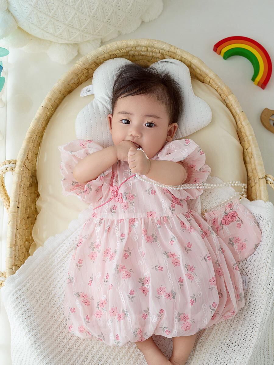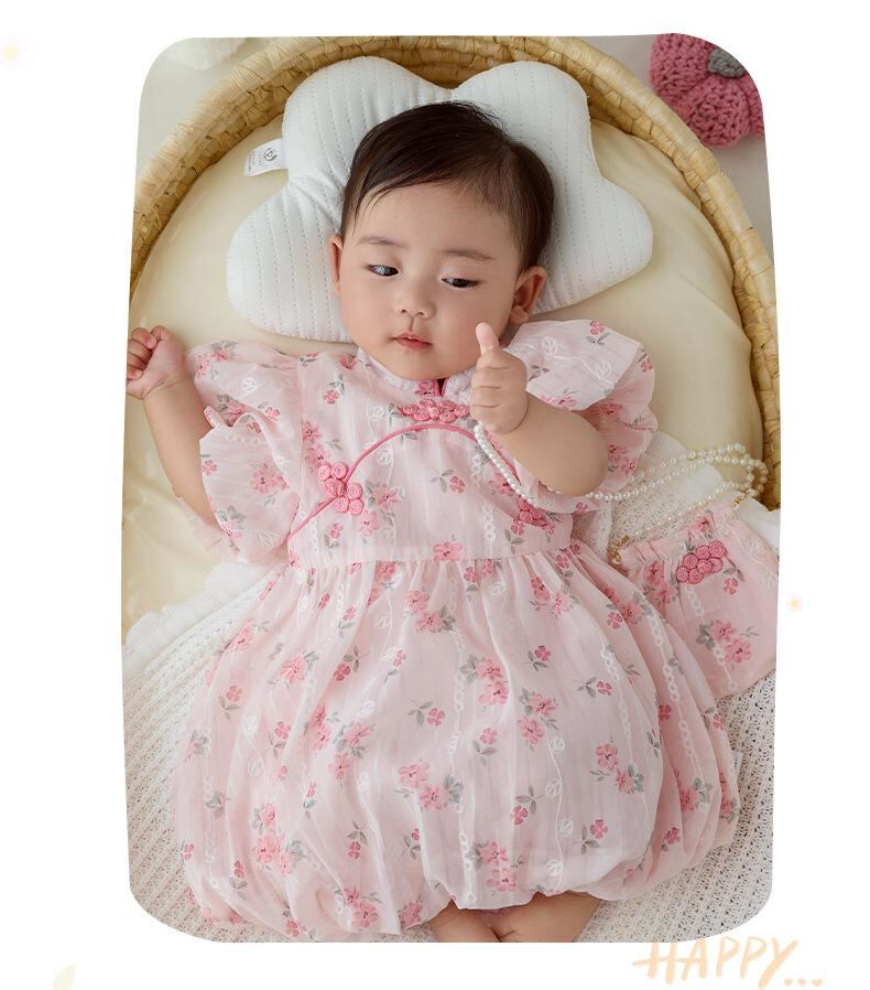 ワンピース ベビー服 女児 新生児 女の子 チャイナドレス プリンセススカート Aライン 花柄 ポリエステル かわいい ピンク系
