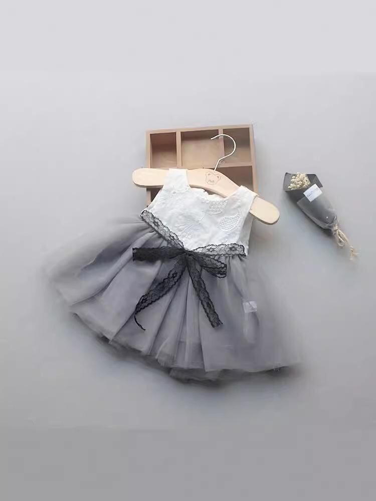 ワンピース ベビー ノースリーブ チュールスカート レース リボン コットン Aライン 春夏 かわいい 80 90 100 110 ピンク系