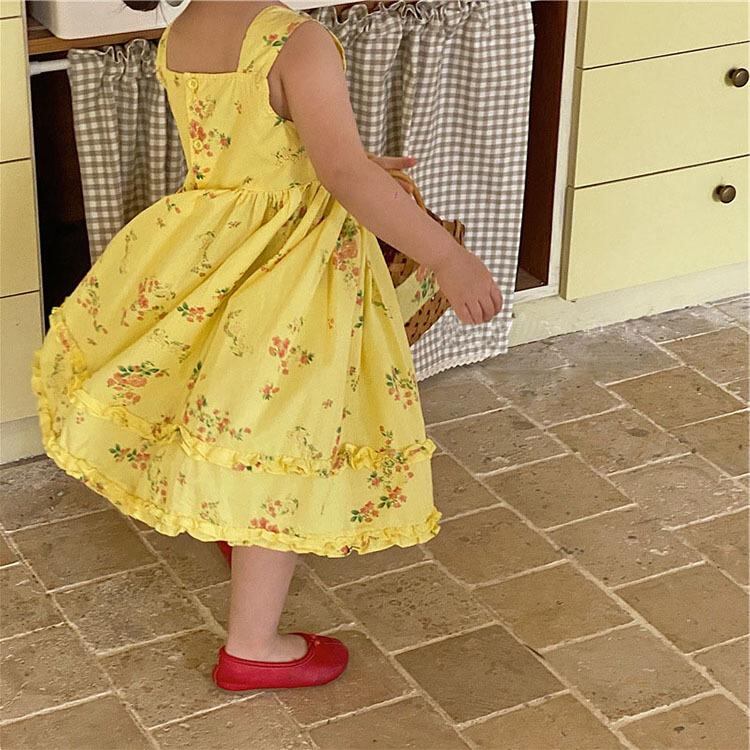 ワンピース キッズ 子供服 女の子 花柄 Aライン 吊りスカート ノースリーブ チュールスカート 春夏 かわいい 3歳 4歳 5歳 6歳 7歳 8歳 コットン
