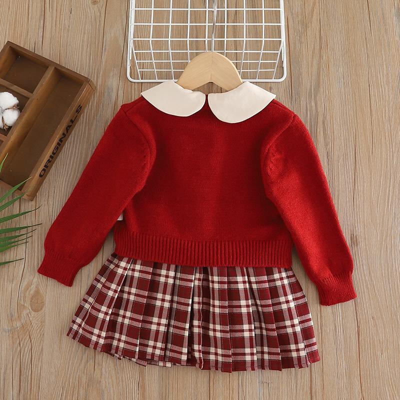 ワンピース キッズ 女の子 ニットカーディガン セットアップ チュールスカート チェック柄 かわいい 幼児 子供服 秋冬 レッド 春秋
