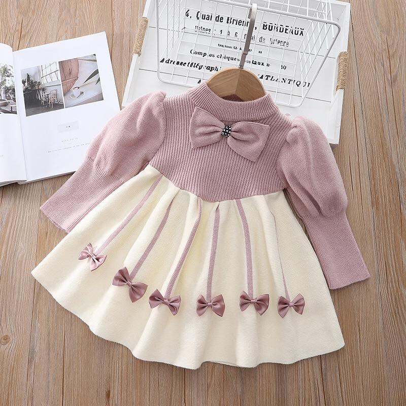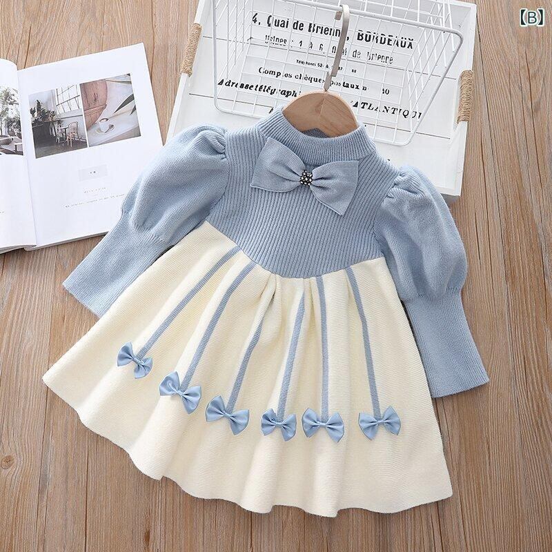 ワンピース キッズ 女の子 秋冬 ニット プリンセス 長袖 丸首 チュール 発表会 結婚式 お呼ばれ かわいい 伸縮性 暖かい 裏地付き Aライン 90 100 110 120 130