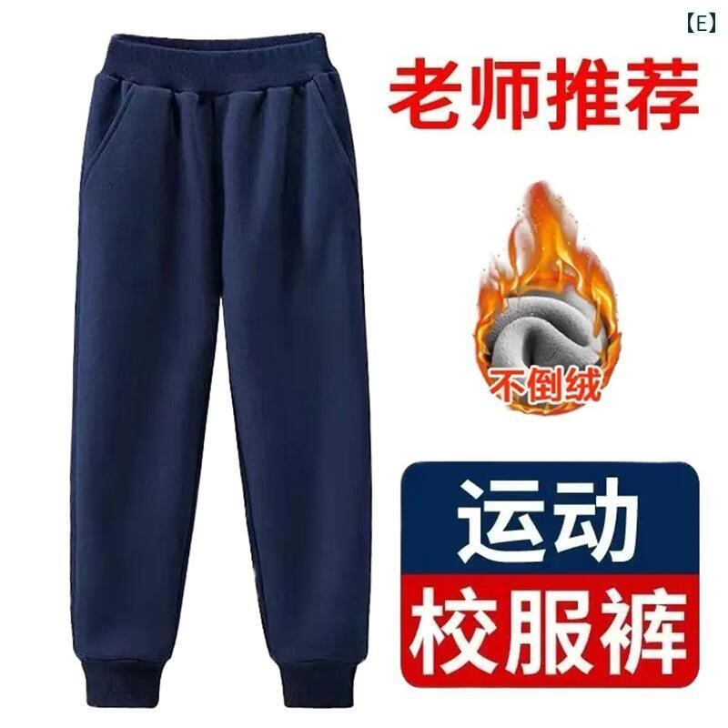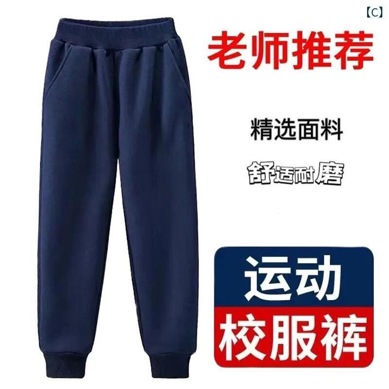 子供用スポーツパンツ 紺色 ダークブルー 男女兼用 キッズ 学生 スクールパンツ 子供 秋冬 ロングパンツ 綿 伸縮性