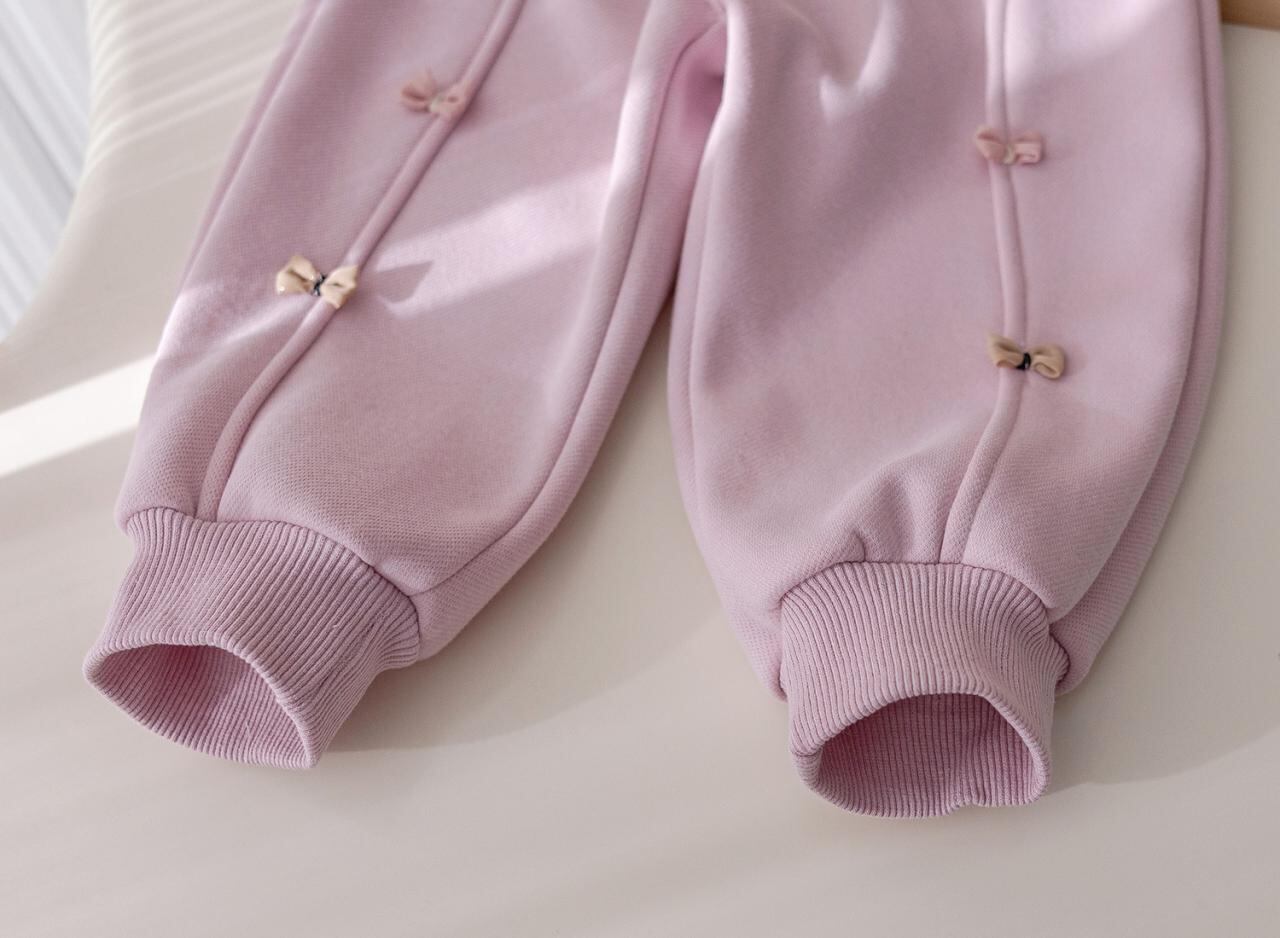 子供用 ズボン 裏起毛 カジュアル パンツ 秋冬 かわいい 蝶結び 厚手 スウェットパンツ 女の子 ガールズ ロングパンツ 80cm 90cm 100cm 110cm 120cm 130cm コットン ピンク系 アイボリー
