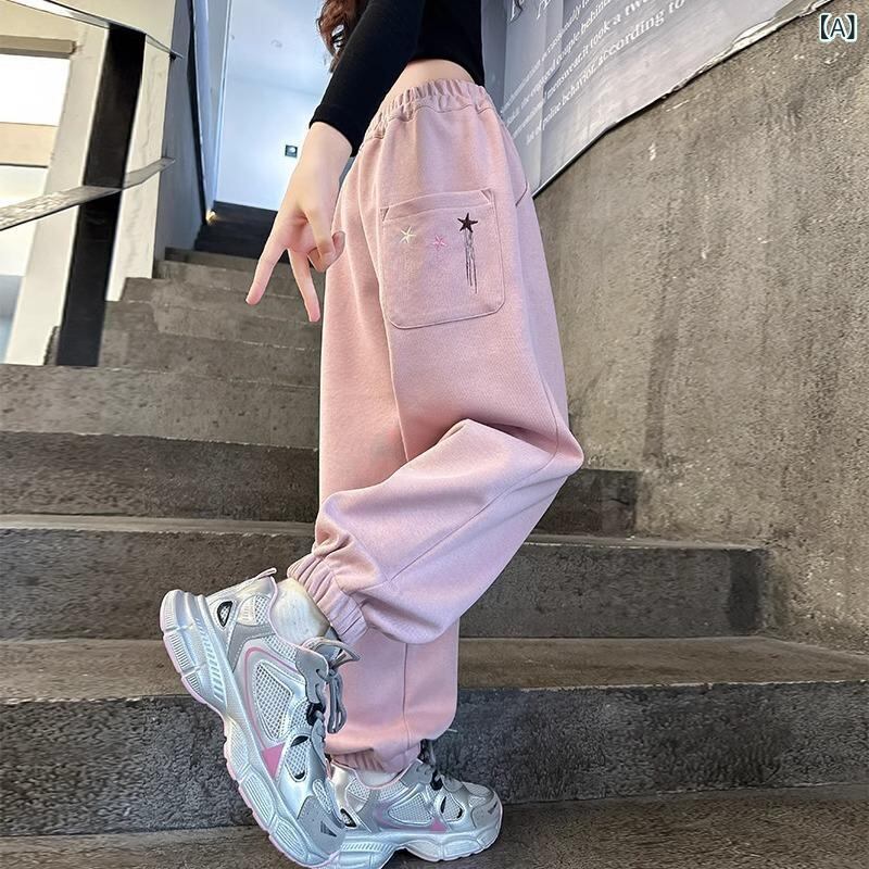 子供服 パンツ 女の子 ワイドパンツ スポーツパンツ ジャージパンツ 春秋 ウエストゴム 伸縮性 普段使い 部屋着 ピンク系 ブラック
