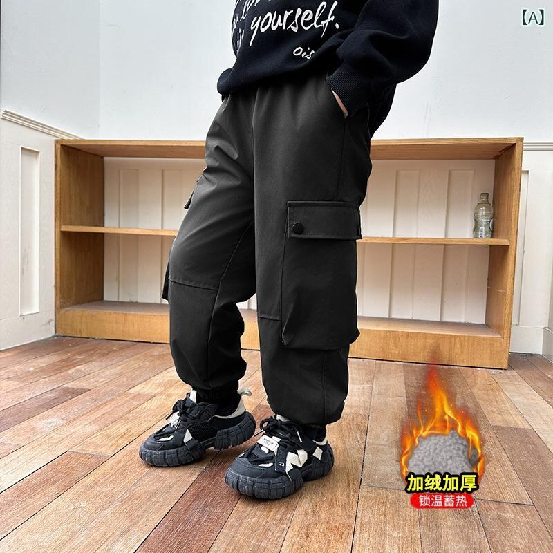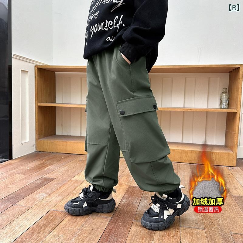 キッズ ボーイズ 秋冬 防風 防水 カーゴパンツ 裏起毛 ロングパンツ 運動着 普段着 中学生 高学年 ズボン