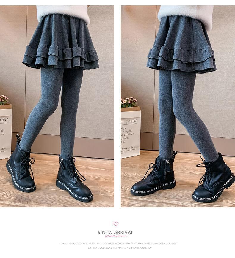 子供服 パンツ ガールズ スカッツ 春秋 高学年 女児 裾フリル レギンス付きスカート 伸縮性 ウエストゴム 普段着 おしゃれ かわいい ブラック グレー 120 130 140 150 160 170cm
