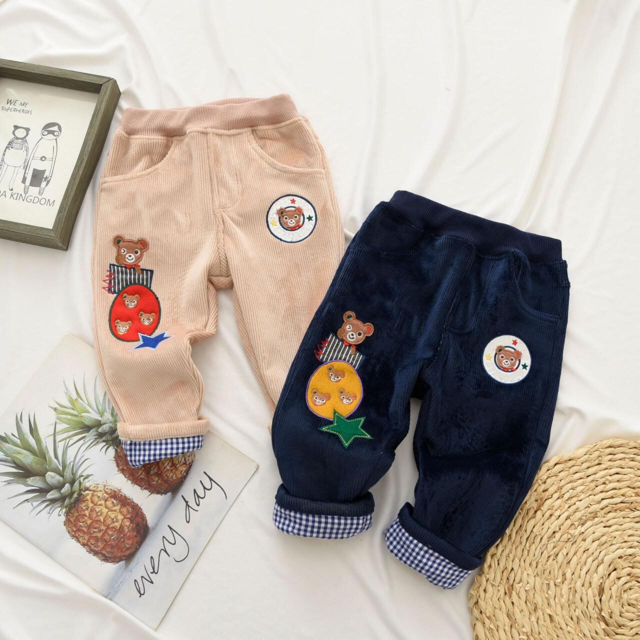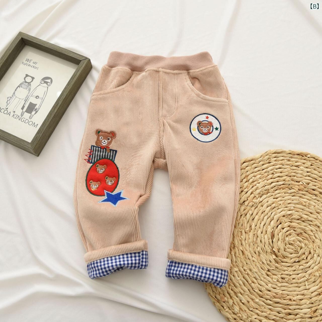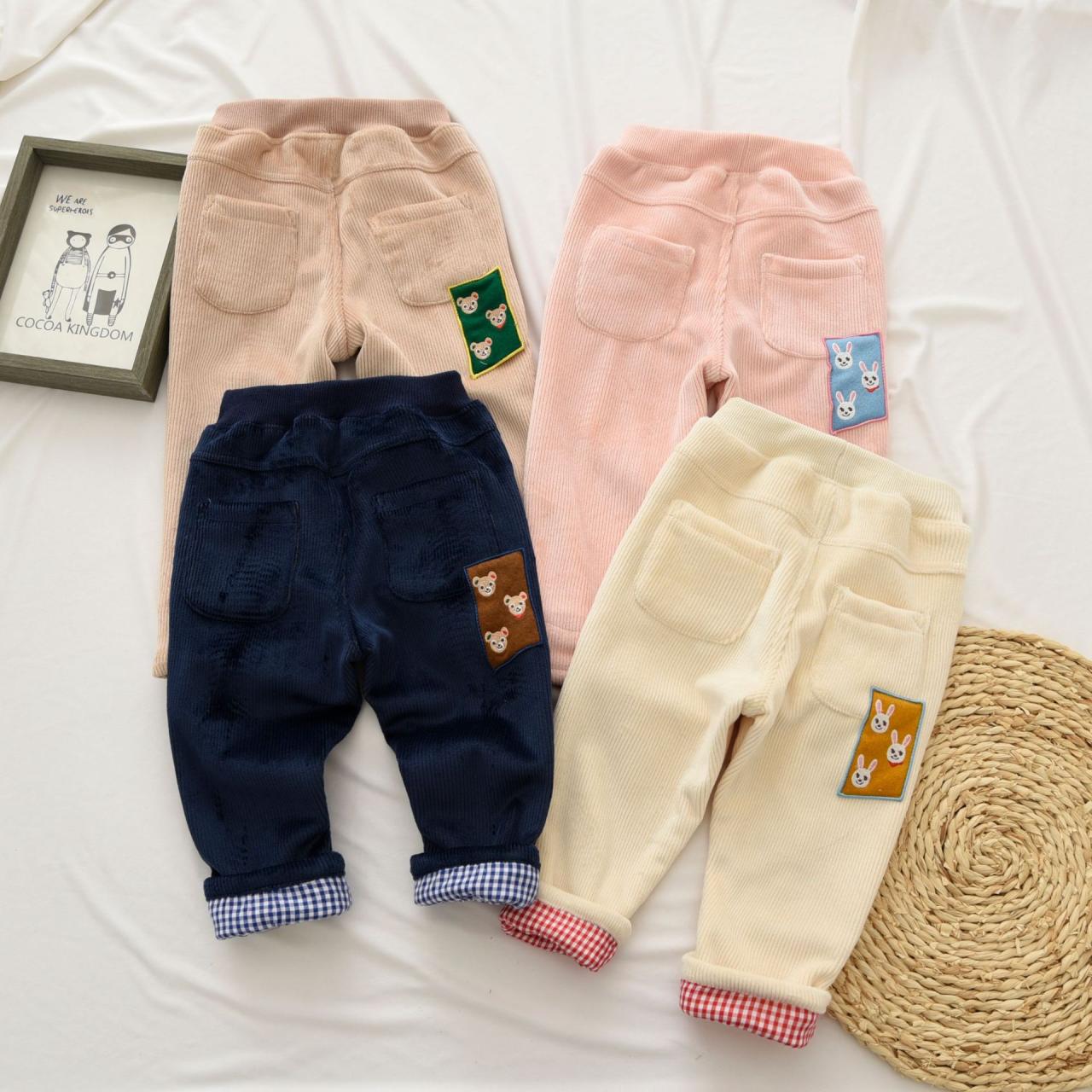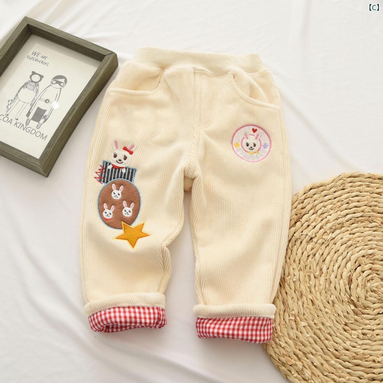 子供服 パンツ 冬用 ズボン 小熊 ウサギ 刺繍 伸縮性 防寒 普段使い かわいい 90 100 110 120 130 ピンク ベージュ ネイビー