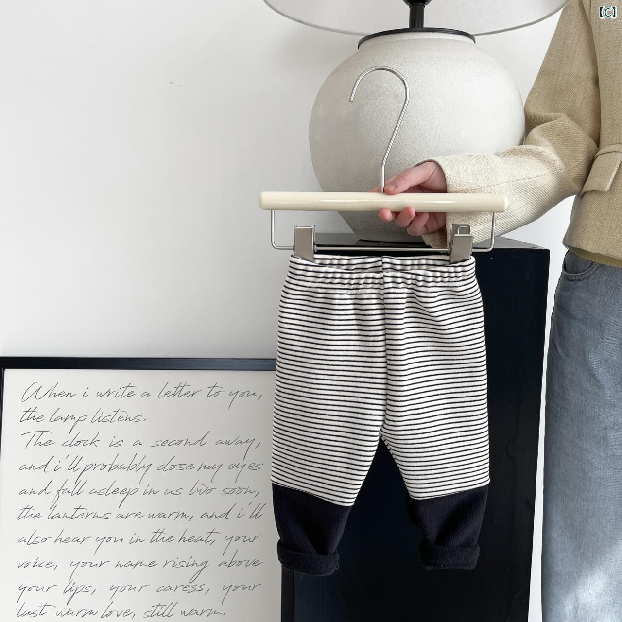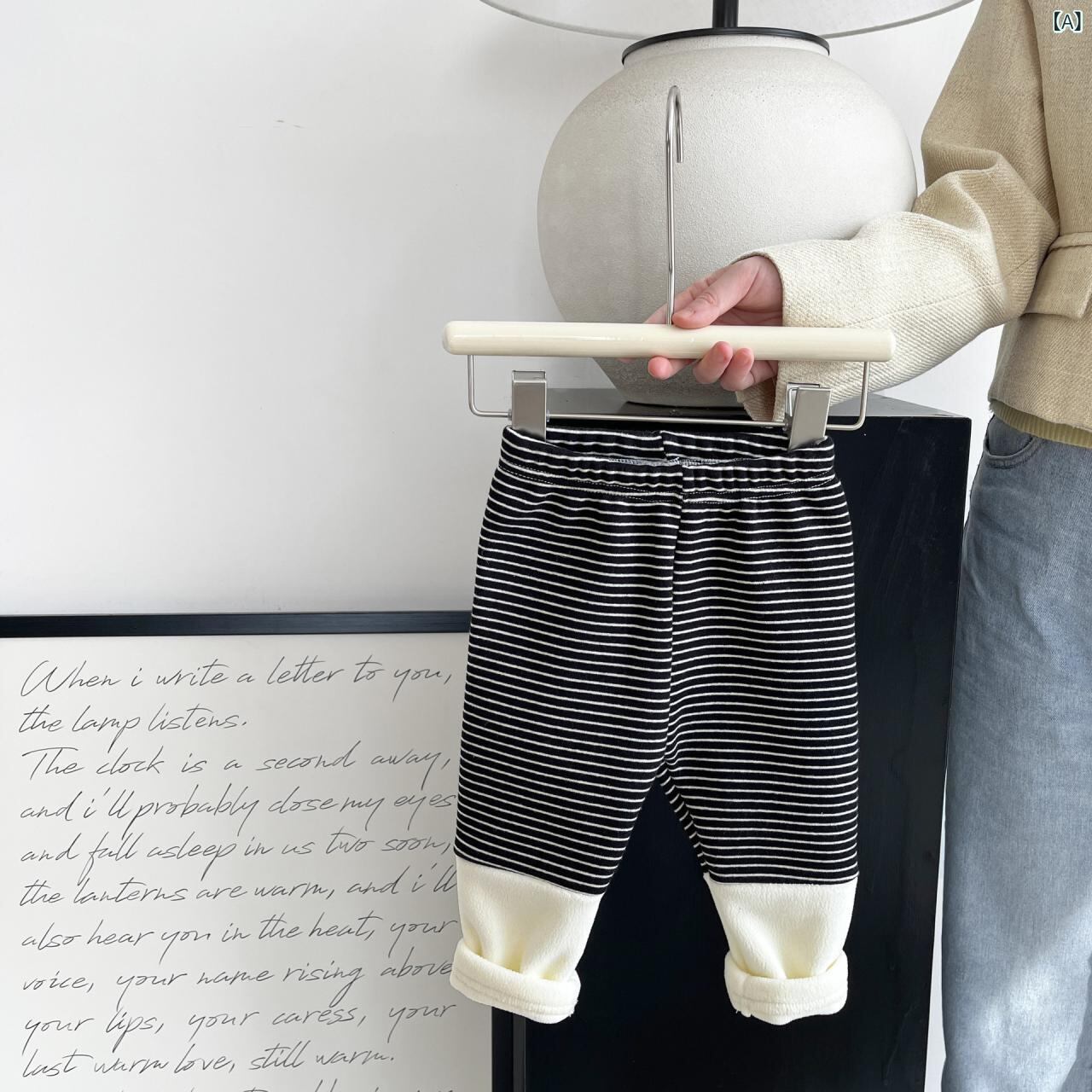子供服 女の子 裏起毛レギンス 冬 韓国風 ストライプ 切り替え カジュアルパンツ 幼児 厚手 防寒 パンツ 黒ストライプ柄 茶ストライプ柄 生成りストライプ柄 綿