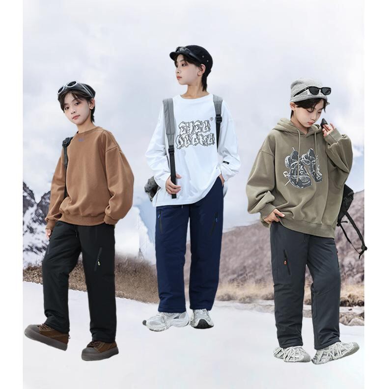 キッズ 冬用コットンパンツ 防水 防風 防寒 長ズボン ゆったりサイズ 男の子 130 140 150 160 170 ブラック 濃紺 ダークグレー 運動着