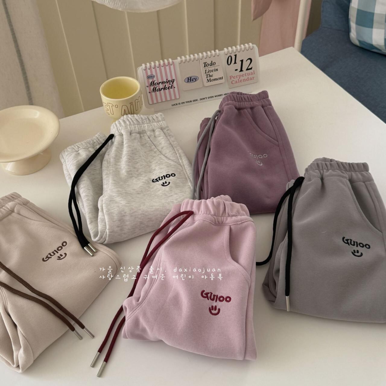 子供服 スウェットパンツ 秋冬 男女兼用 スマイル 運動着 部屋着 ゆったり リラックス パンツ 綿混 ピンク系 グレー