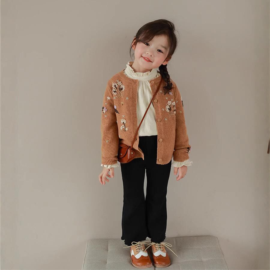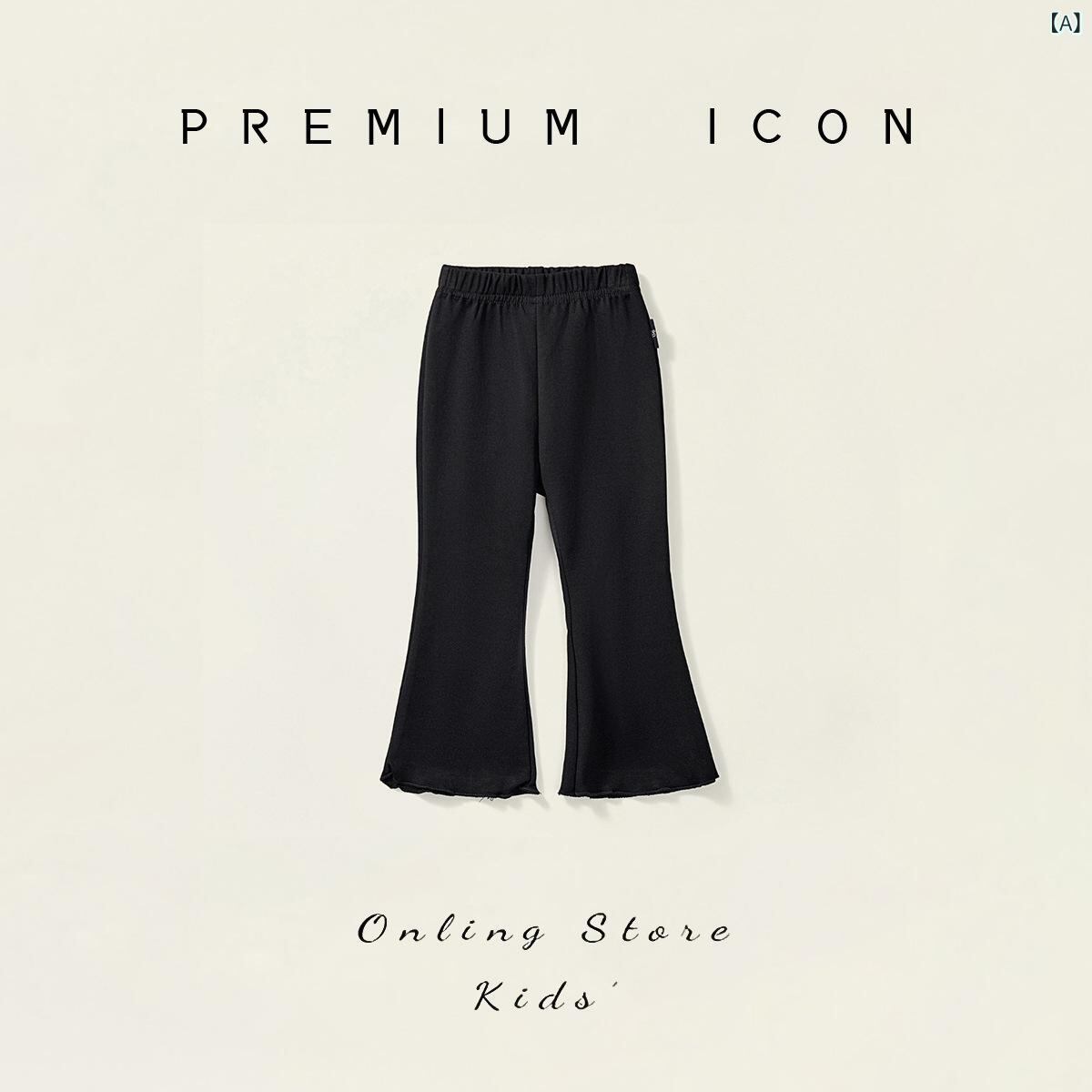子供服 女の子 ズボン パンツ 喇叭パンツ フレアパンツ ロングパンツ ガールズ 女児 キッズ 伸縮性 ウエストゴム 無地 かわいい おしゃれ カジュアル 普段着 春秋 黒 白 灰色