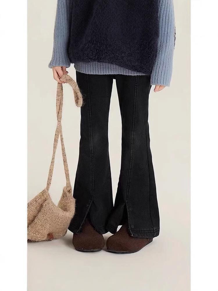 子供服 パンツ 春秋 女児 デニム ズボン 黒 長ズボン 春 キッズ 女の子 カジュアル 喇叭パンツ 高学年 ジュニア 高身長 高腰 B類 ストレッチ