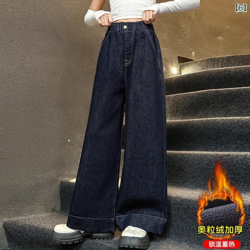 子供服 ジーンズ 女の子 ワイドレッグパンツ 春秋 冬 デニムパンツ 中 বড় キッズ ゆったり 伸縮性 かわいい ガールズ 普段着 通学着 120 130 140 150 160 170cm