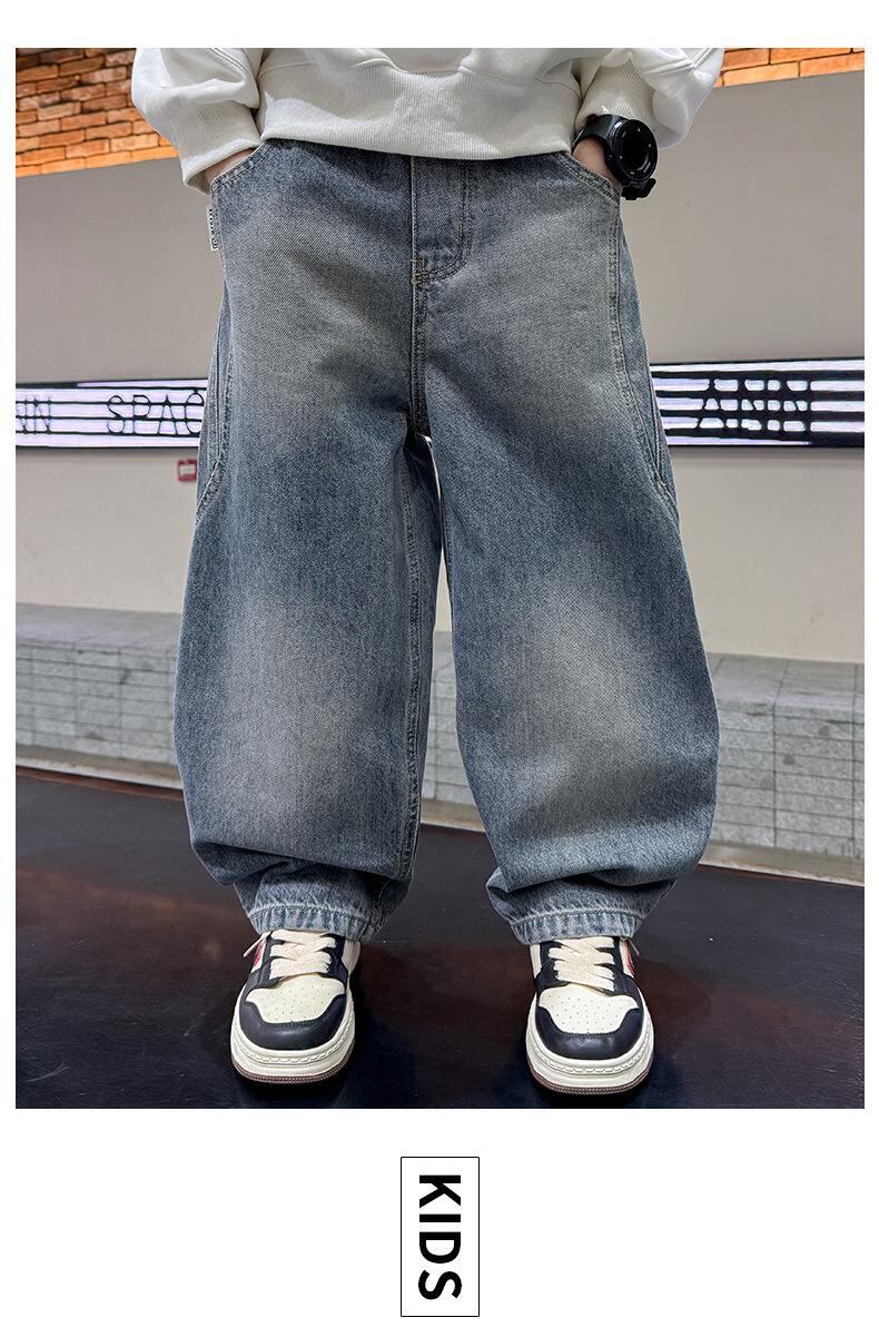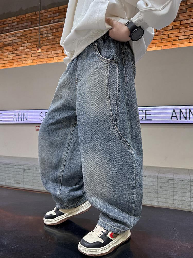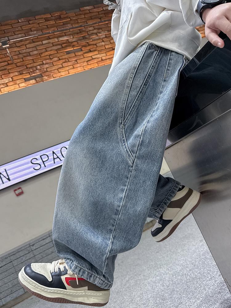 キッズ 男の子 デニムパンツ ストレートパンツ ロングパンツ コットン 伸縮性 ウエストゴム 普段使い ブルー
