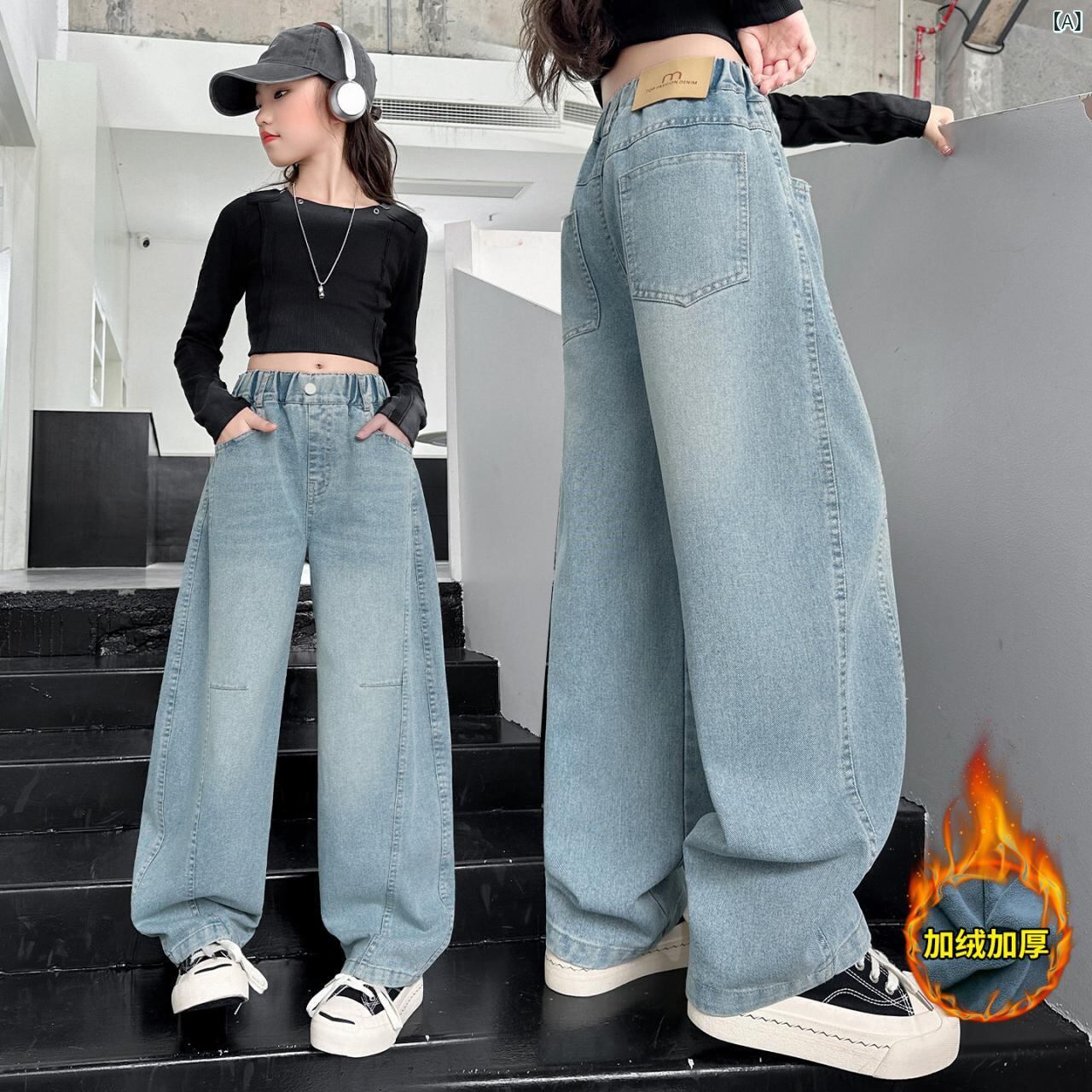 子供服 パンツ 女児 デニム 秋冬 裏起毛 ジーパン ストレート ゆったり 高学年 ロングパンツ 120cm 130cm 140cm 150cm 160cm 170cm