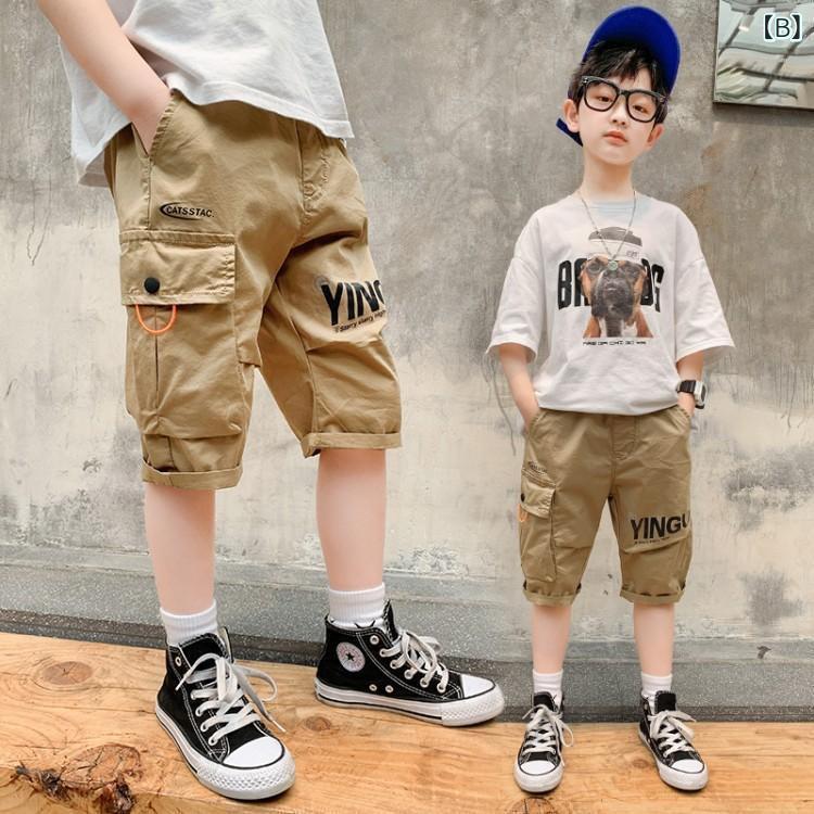 キッズ ハーフパンツ 男の子 子供服 カーゴパンツ 薄手 コットン 高学年 ウエストゴム カジュアル スポーティー 黒 ベージュ 110cm 120cm 130cm 140cm 150cm 160cm 170cm