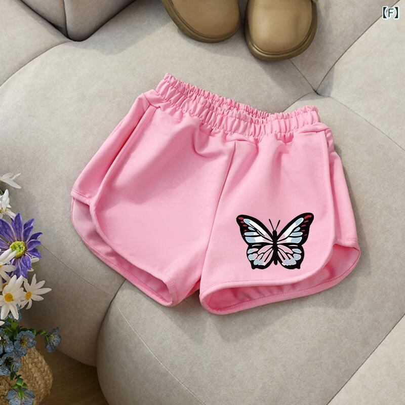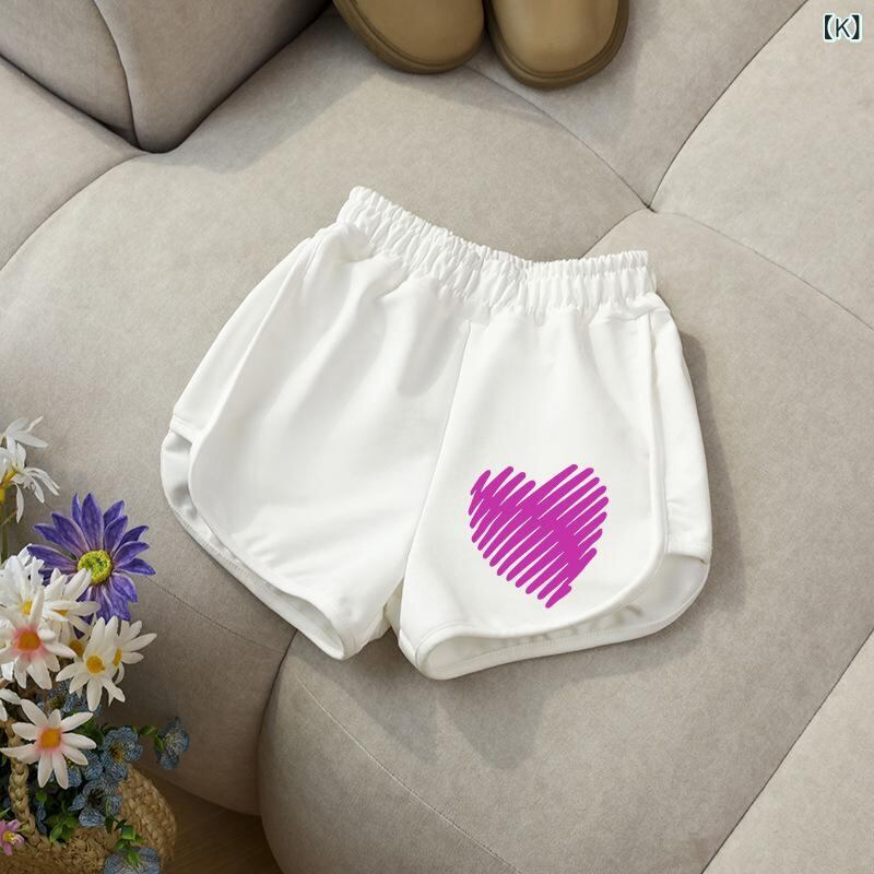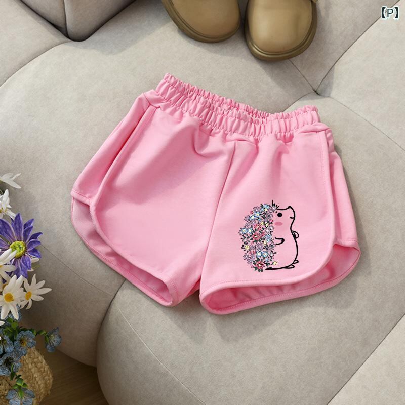 キッズ 女の子 ハーフパンツ ショートパンツ 夏服 子供服 ゆったり コットン カジュアル パンツ かわいい プリント 薄手 通園 通学 普段着 グレー ブラック ホワイト ピンク系 90 100 110 120 130 140 150
