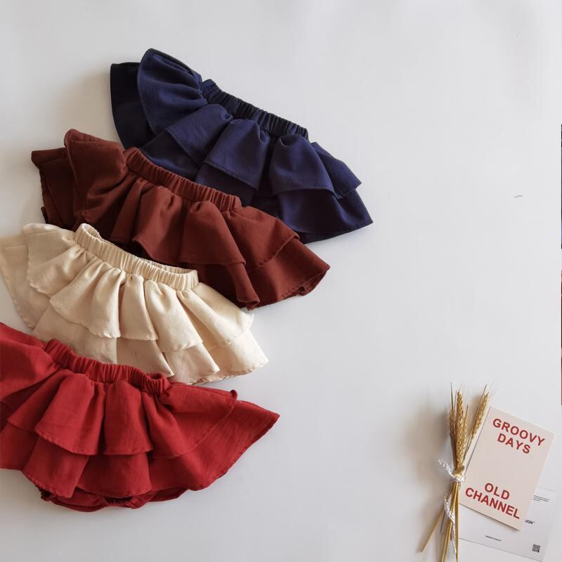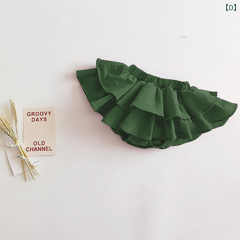 子供服 パンツ スカート付きパンツ ベビー チュールスカート 韓国風 コットン100% 春夏 幼児 女の子 かわいい フリル A類 中腰 短パン 90cm 100cm 110cm 120cm イエロー レッド パープル グリーン ベージュ ライトブルー