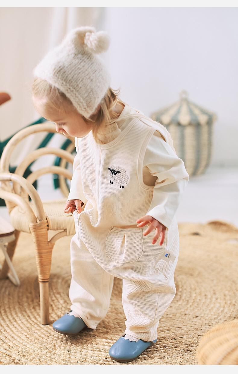 ベビー キッズ 男女兼用 コットン 背当て付き パンツ 北欧風 ロングパンツ ミルクホワイト 73 80 90 100cm